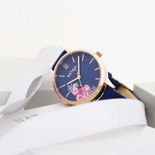 First Love 0602 Deep Blue Leather Watch | Rose Gold Stainless Steel