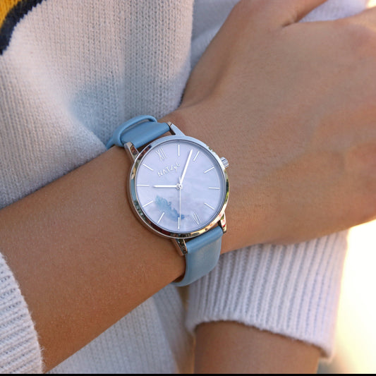 Freedom 0703 Baby Blue Leather Watch | Stainless Steel